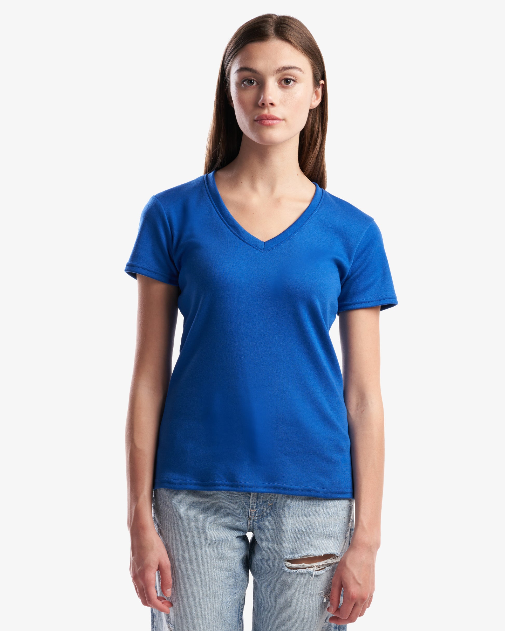 Meet your colourful v-neck companion. This is a midweight - ring spun ladies v-neck t-shirt with short sleeves.